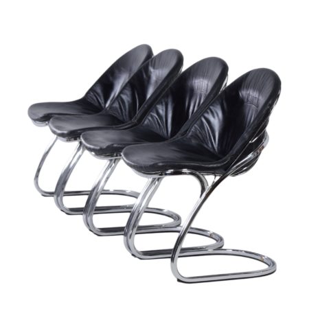 Cantilever Chairs 3011 by De Wit, 1950s – Set of 4 in New Black Rib Fabric