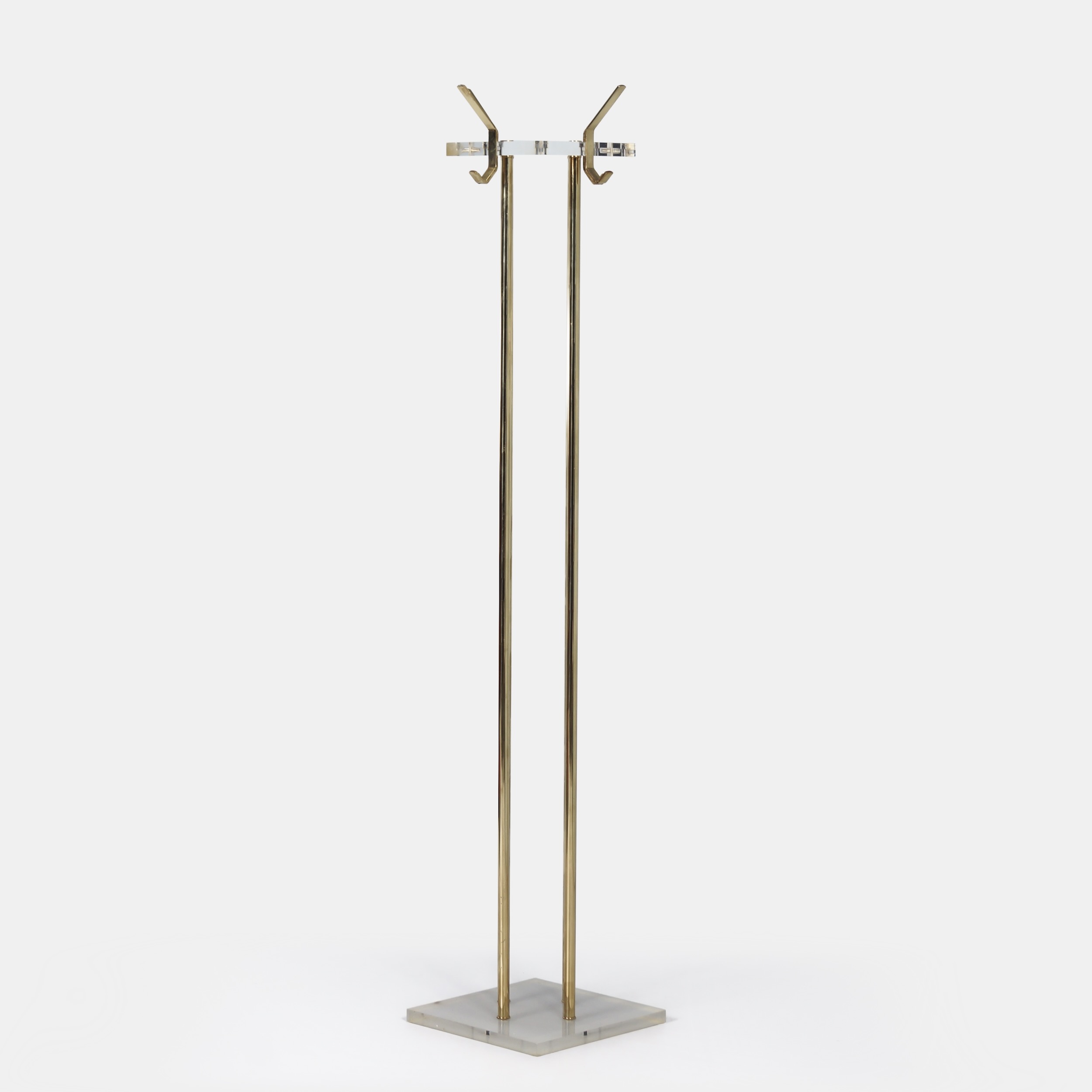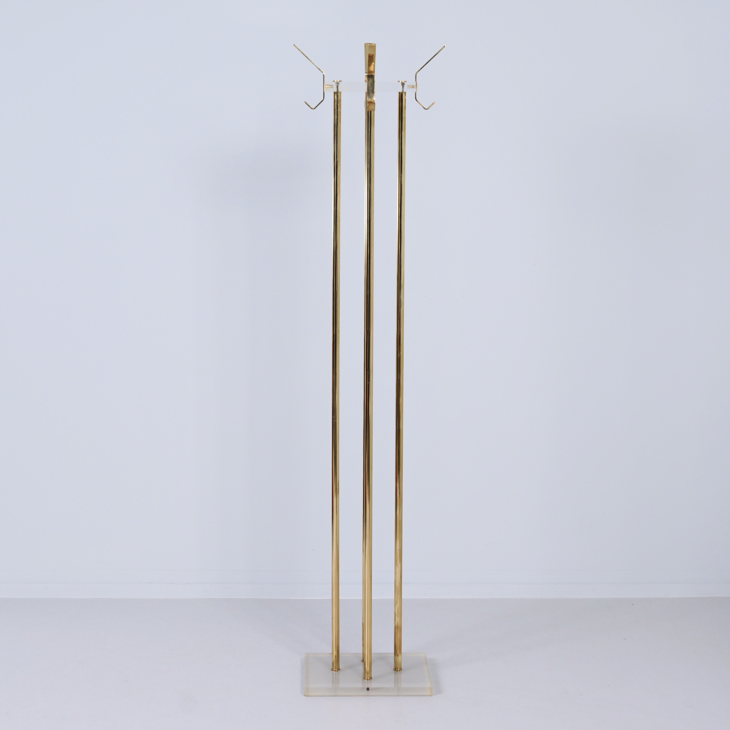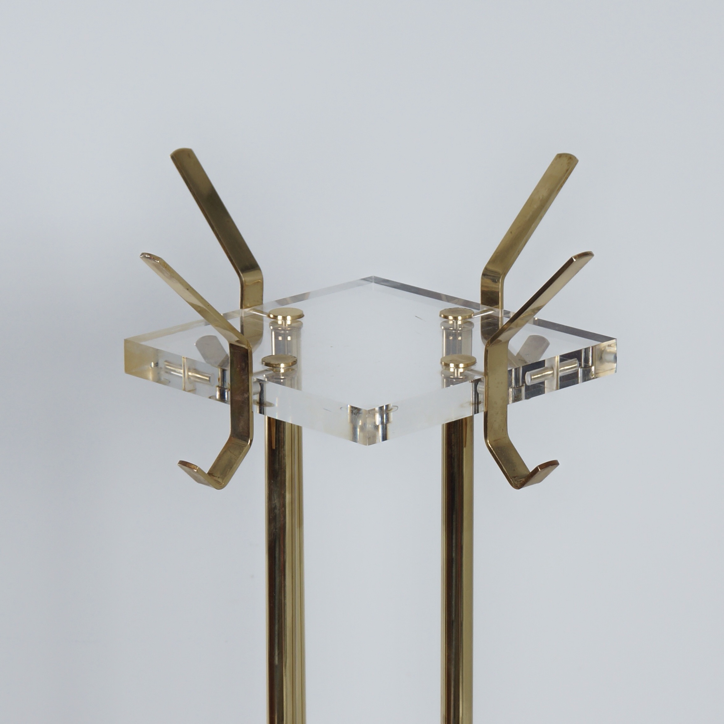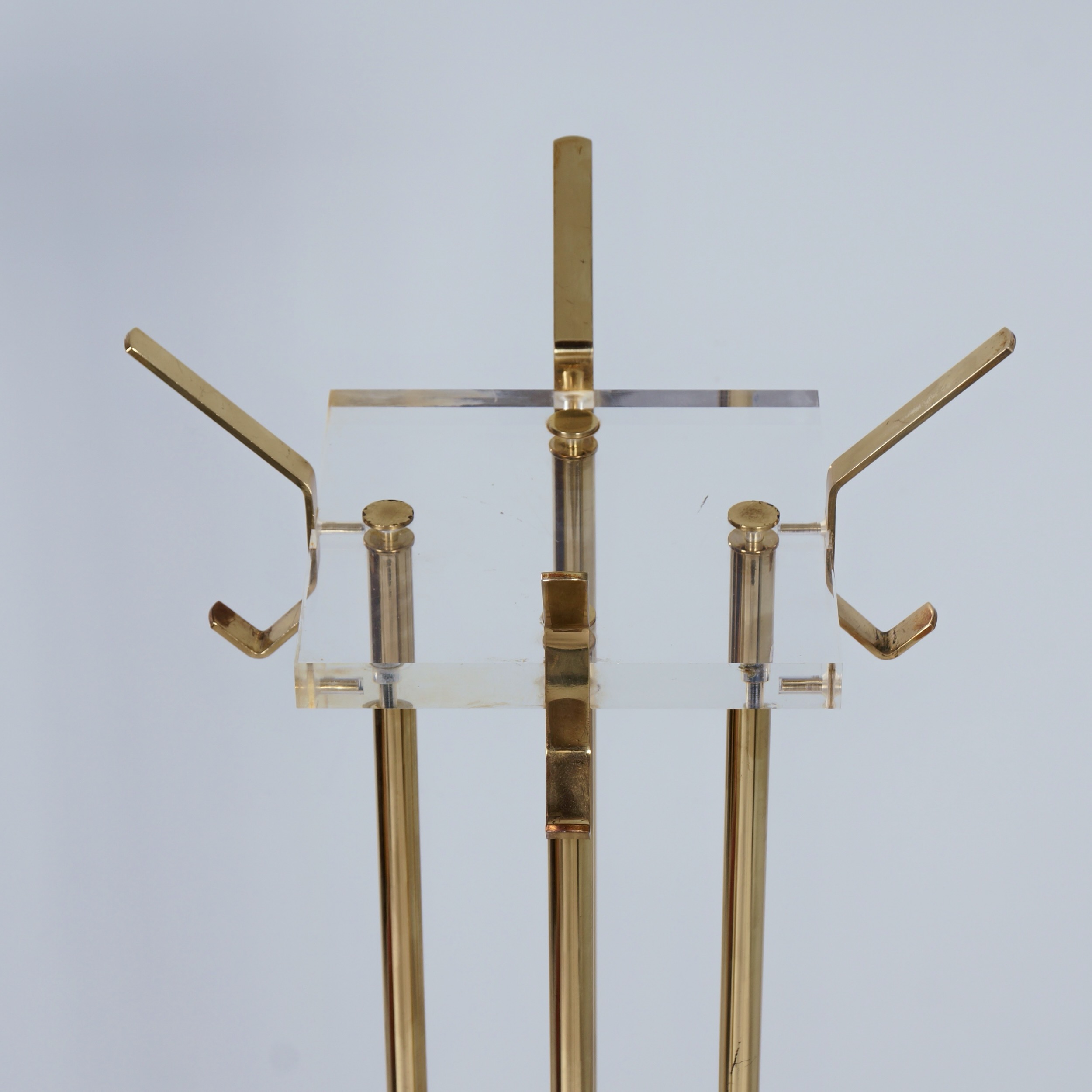 Hollywood Regency Coat Stand in Acrylic and Brass, 1980s