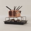 INCL. VAT ACCORDING TO THE MARGIN SCHEME (IF APPLICABLE)Copper fondue set designed by Henning Koppel (1918-1981) for Georg Jensen, Denmark, 1970s. This condition of this durable fondue set is still very good; cleaned and polished. The price is for the set as shown in the pictures.