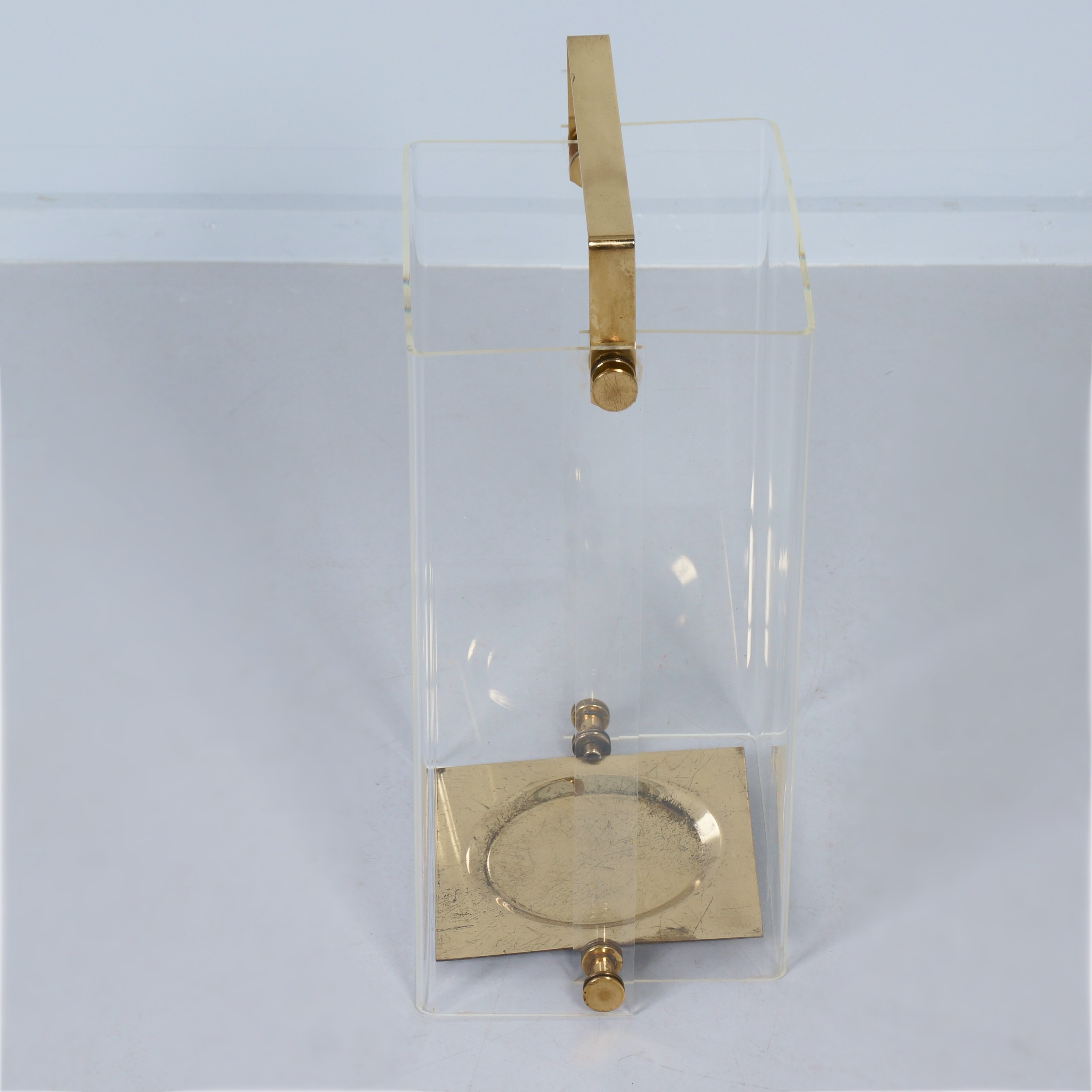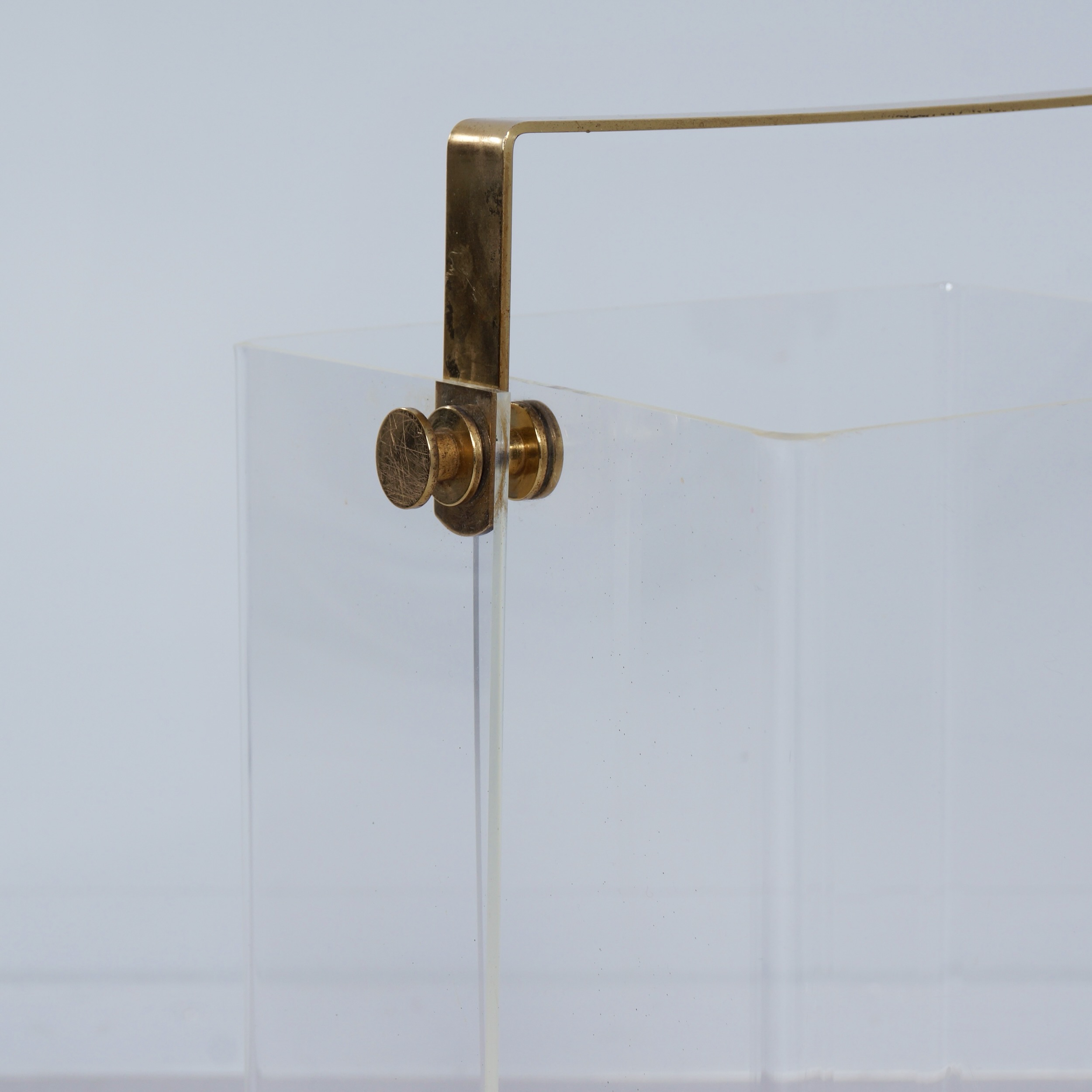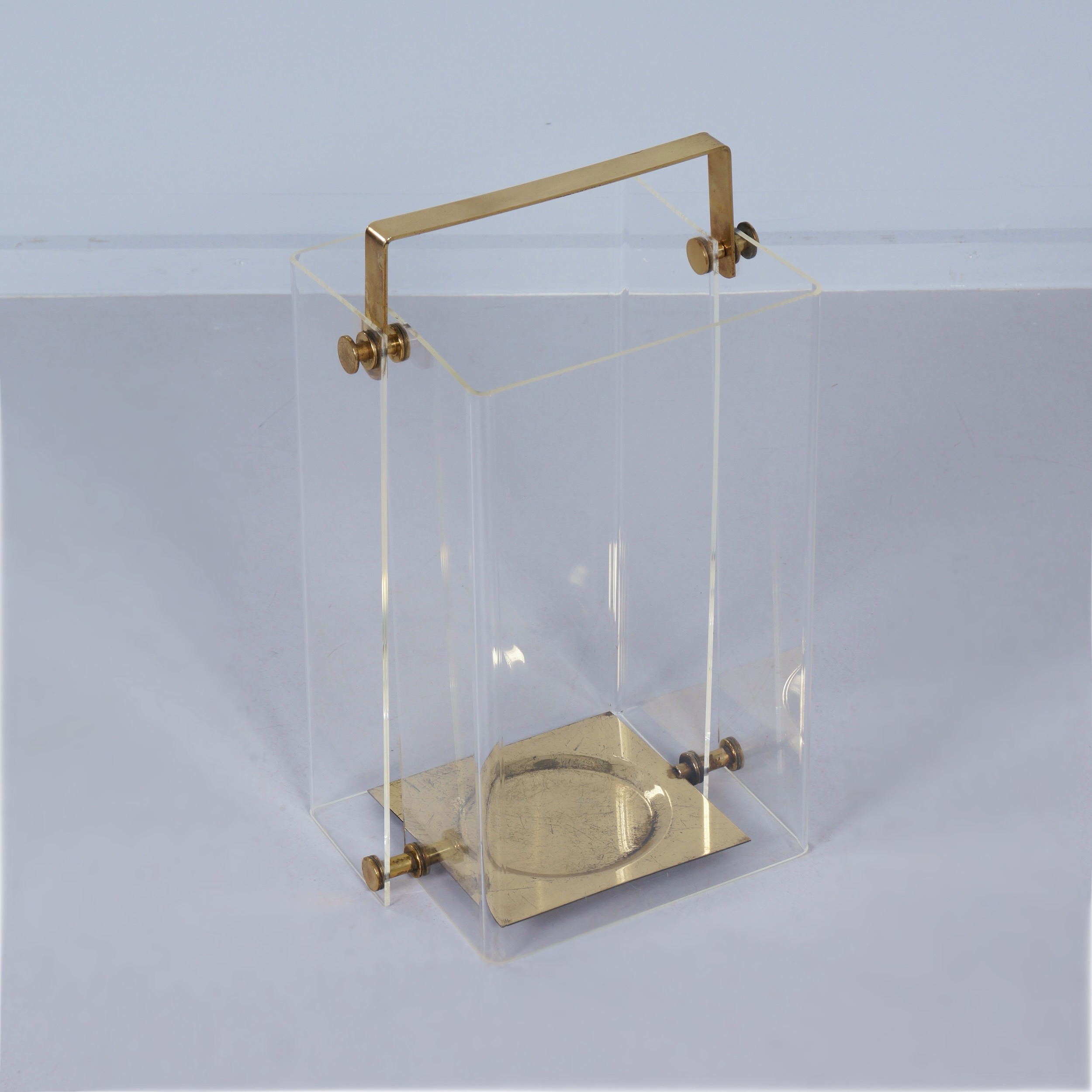 Hollywood Regency umbrella stand in acrylic and brass from the 1980s. A light and elegant design that adds a refined, luxurious touch to your hallway or entryway, with a spacious and airy effect created by the transparent material and refined brass details.