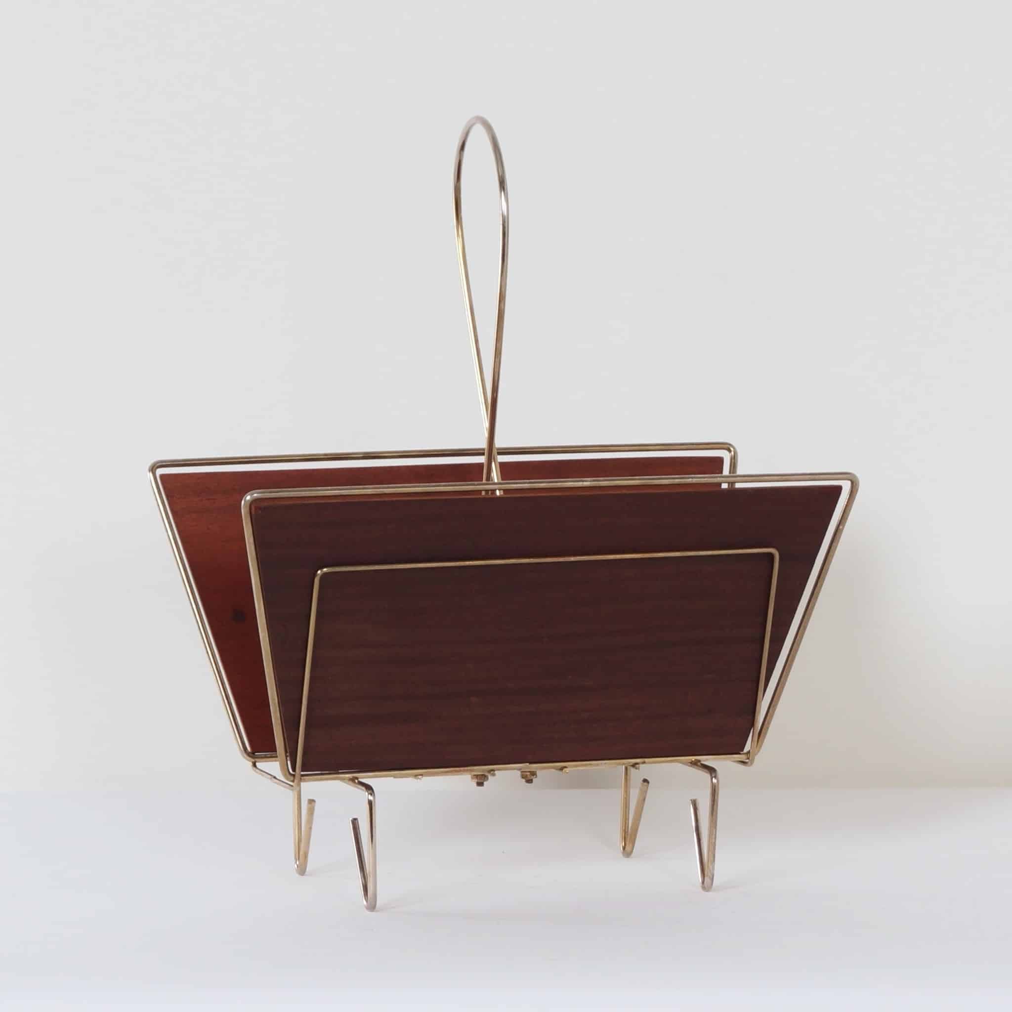 Mid-Century Magazine Holder in Brass and Teak – 1950s Design