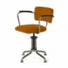 INCL. VAT ACCORDING TO THE MARGIN SCHEME (IF APPLICABLE)Swivel office chair model 354 designed by W.H. Gispen in 1933. These Gispen 354 chairs were also used in the Radio room of the SS Rotterdam (Holland America line). This vintage office chair with a four-legged base can rotate and is height adjustable by means of a special swivel knob under the legs (see photos). The backrest is also adjustable (hinge). Dimensions: h x w x d = 78 x 59 x 51 cm. The seat height is adjustable from 48 to 55 cm. The seat depth is 44 cm. Material: iron, wood, chrome tube, foam, fabric and bakelite. The condition is very good; the frame has normal signs of use and wear and the wooden seat and back have been reupholstered with new foam and yellow corduroy rib by Lancier. Produced until 1966. Source: Book W.H. Gispen series of products 1923-1960, André Koch.