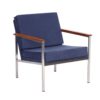 INCL. VAT ACCORDING TO THE MARGIN SCHEME (IF APPLICABLE)Gispen 1453 Arm Chair Coen de Vries; vintage easy chair with armrest designed by Coen de Vries for Gispen in 1967. The frame is made of iron (chrome) with teak wooden armrests. The seat and back are made of bend steel. The blue cushions are reversible and have a zipper. Armchair No. 1453 was part of series G3. This series was part of the BZ (Better Sitting) program. Considering its age this armchair is in good condition; the armrests are professionally sanded and lacquered and the upholstery is cleaned and impregnated. Marked: Gispen. Source: Stichting Gispen Collection. Dimensions: h x b x d = 76 x 68 x 72 cm, seat height = 43 cm. Material: bent steel, iron (chromed), teak wood, foam and fabric.