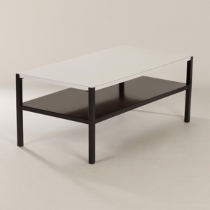 INCL. VAT ACCORDING TO THE MARGIN SCHEME (IF APPLICABLE)Wim Rietveld coffee table model “Regal” designed for Ahrend de Cirkel in the 1960s. The black and white frame is made of square steel box profile and steel plate. The top is made of wood covered with white laminate. The coffee or side table is double marked with: ‘Ahrend Circle’ stamped into the frame and with sticker. Source Book, Wim Rietveld, 010 Publishers, page 83 (see photo).