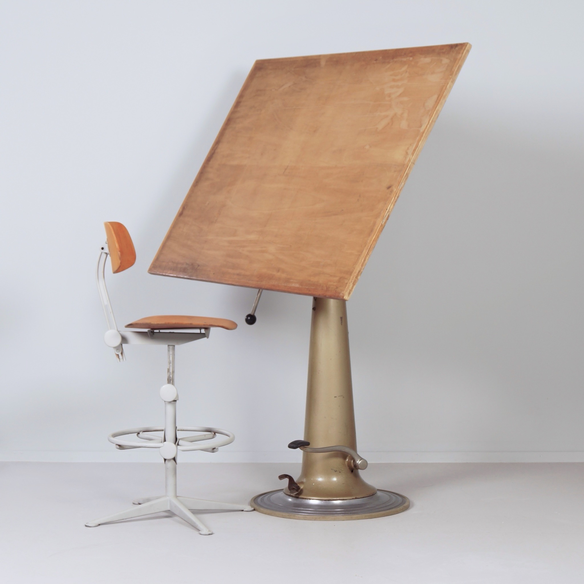 Industrial drawing board from Nike Hydraulics from the 50s, rotatable and height adjustable