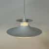 Fog & Mørup pendant Radius designed by Eric Balslev in 1977. This beautiful hanging lamp gives a very nice light effect due to the special construction and the sleek design. The condition of this hanging lamp is still good with normal traces of use and wear (see photo’s). This vintage hanging lamp has been cleaned and the electric wiring has been checked. With original fabric cord. Dimensions: h x d = 30 x 47 cm. Colour White. Material: metal, aluminium. The length of the fabric cord is 1.5 m. Marked: Fog & Morup made in Denmark.