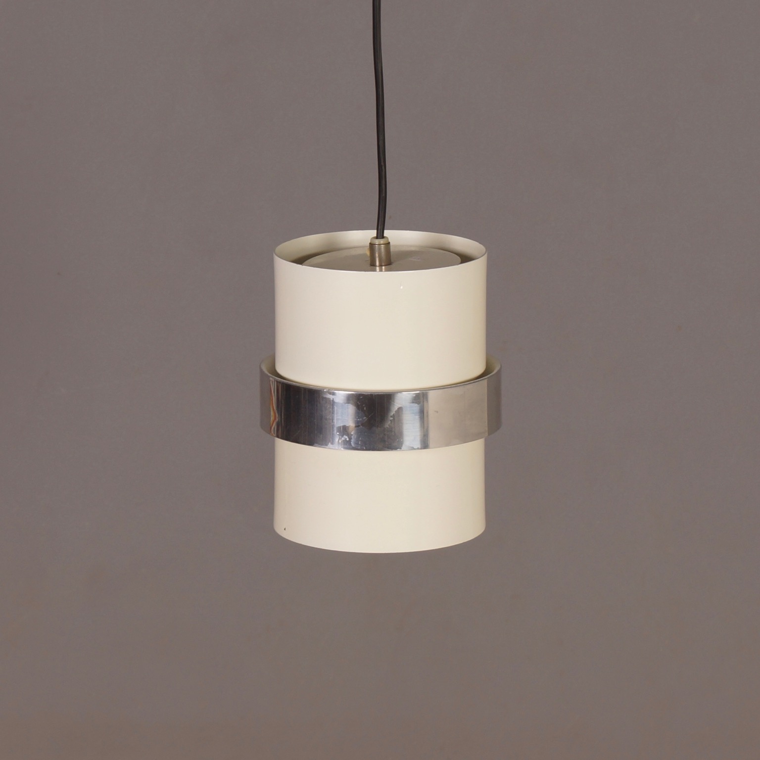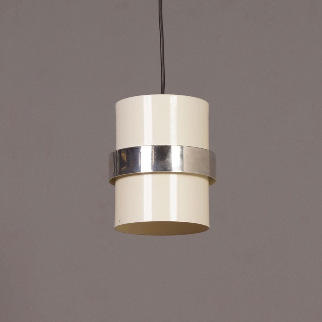 White Cylinder Pendant with Decorative Polished Band by Philips, 1970s