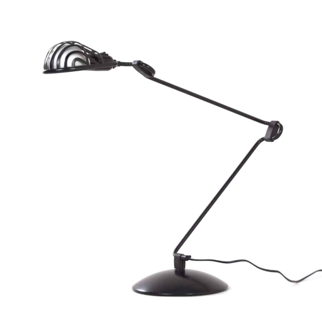 INCL. VAT ACCORDING TO THE MARGIN SCHEME (IF APPLICABLE)Adjustable Igloo desk lamp designed by Tommaso Cimini for Lumina Italia, 1980s. Tommaso Cimini is the founder of the Italian lighting company Lumina in 1980. His first known design was the freely adjustable table lamp “Daphine” one of the first halogen desk lamps for the Milan fair in 1975. In this lamp you see the same simplicity and flexibility as with the Daphine lamp. The condition of this black Igloo desk lamp is still very good and the wiring has been checked by an electrician, normal fitting E27/220V/75W. Also suitable for LED lamps. Dimensions (adjustable): h x w x d = 64 x 23 x 48 cm. Marked: Lumina Italia, model Igloo, 75W.