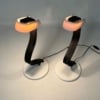 INCL. VAT ACCORDING TO THE MARGIN SCHEME (IF APPLICABLE)Black white Snocky table lamps designed by Bruno Gecchelin for iGuzzini, 1980s. “Why not design a lamp that is also a game?” Durable, strong and bendable in any position making it personal. Dimensions (adjustable): h x w x d = 60 x 24 x 24 cm. Condition: good, with slight signs of use on the caps (see photos). Material: black polyurethane, white plastic and metal. Source: branded: iGuzzini. Source: book Pensate, Prodotte, Illuminate, lampade di Bruno Gecchelin, page 117 (see photo). The price is for the set of two.