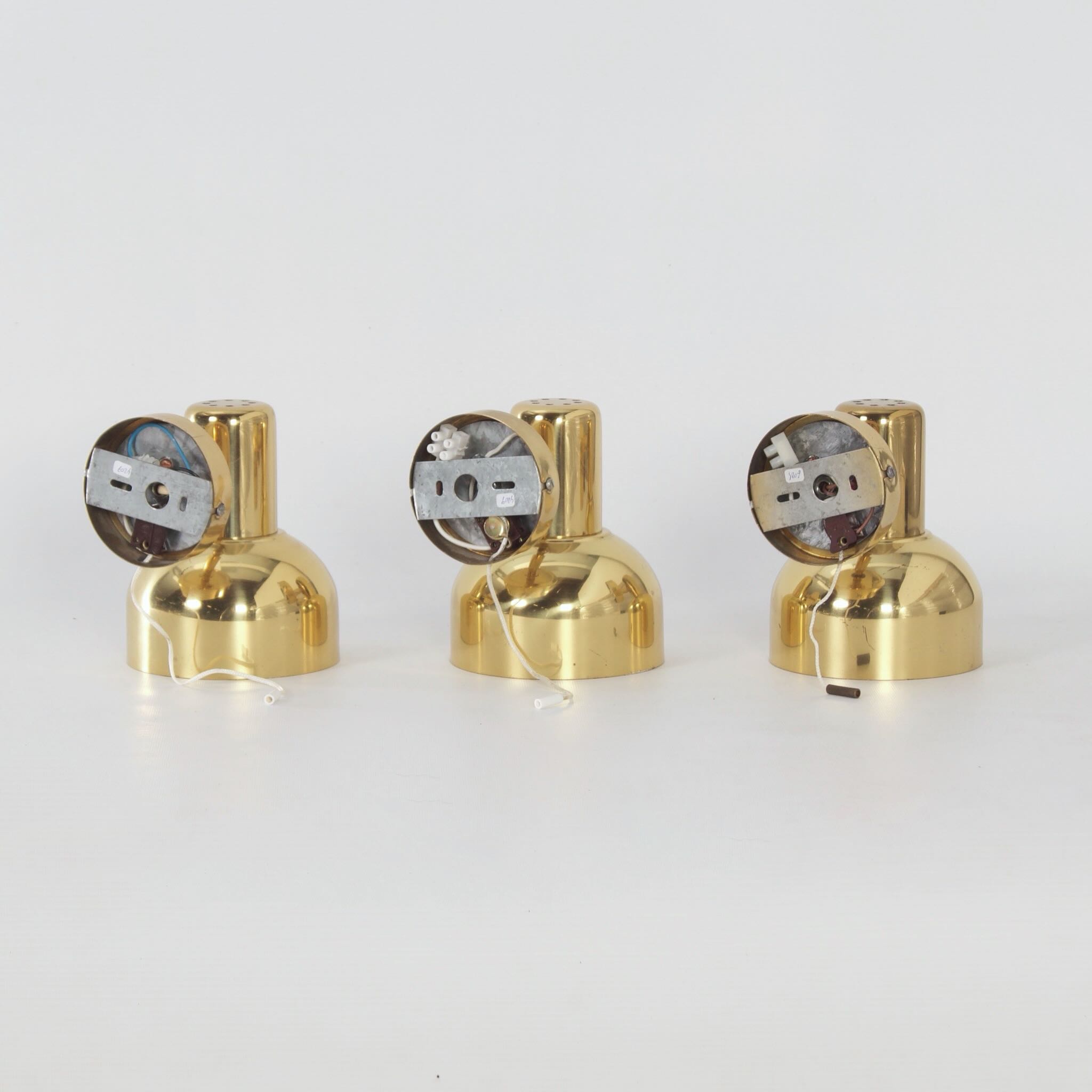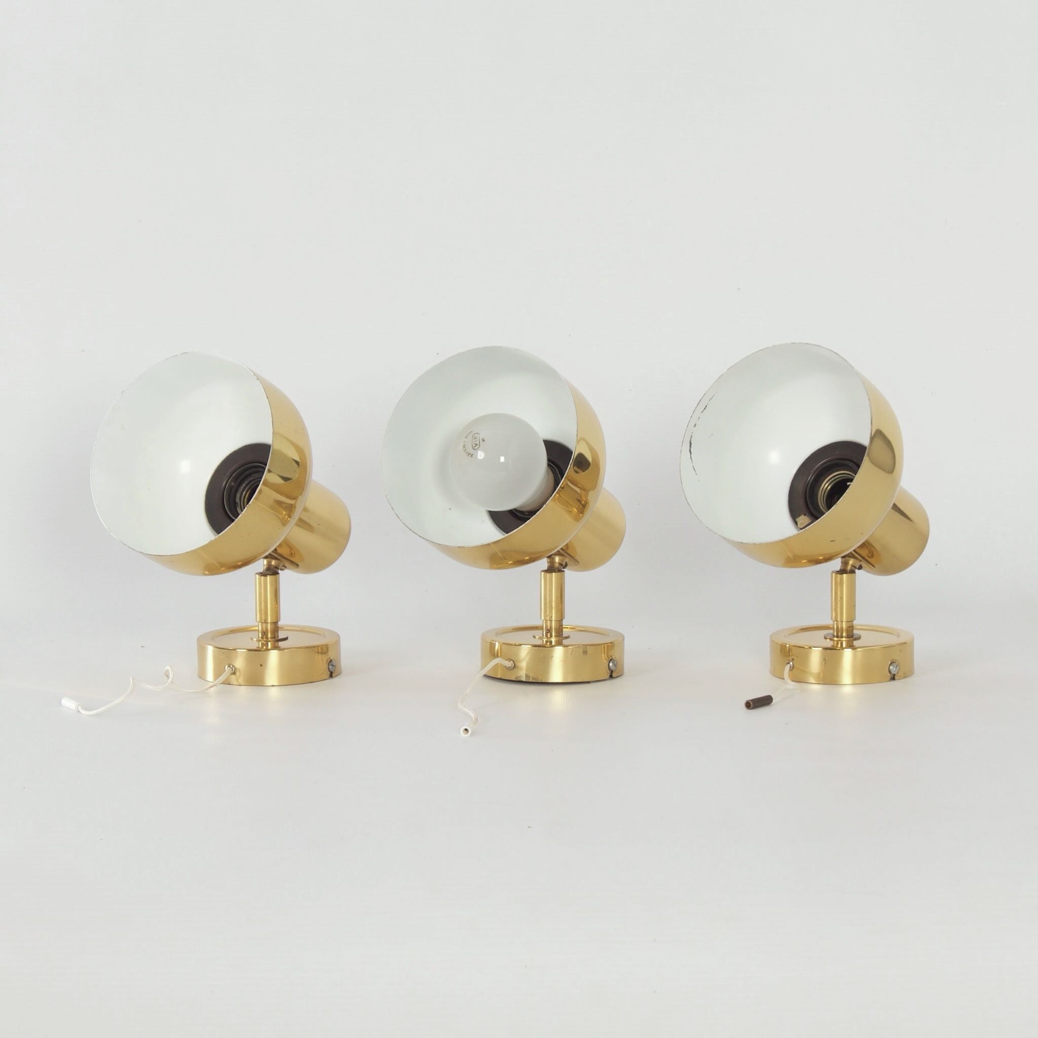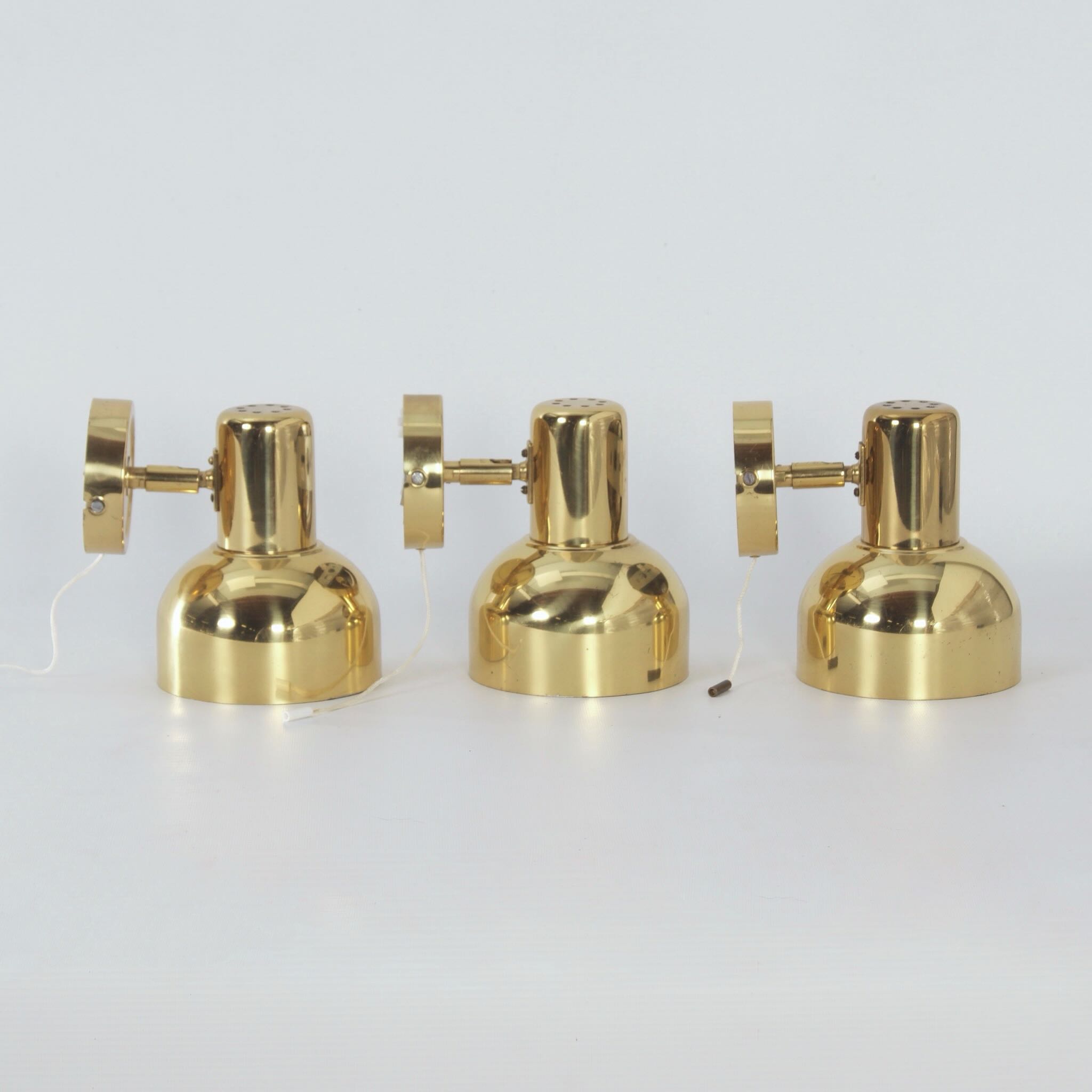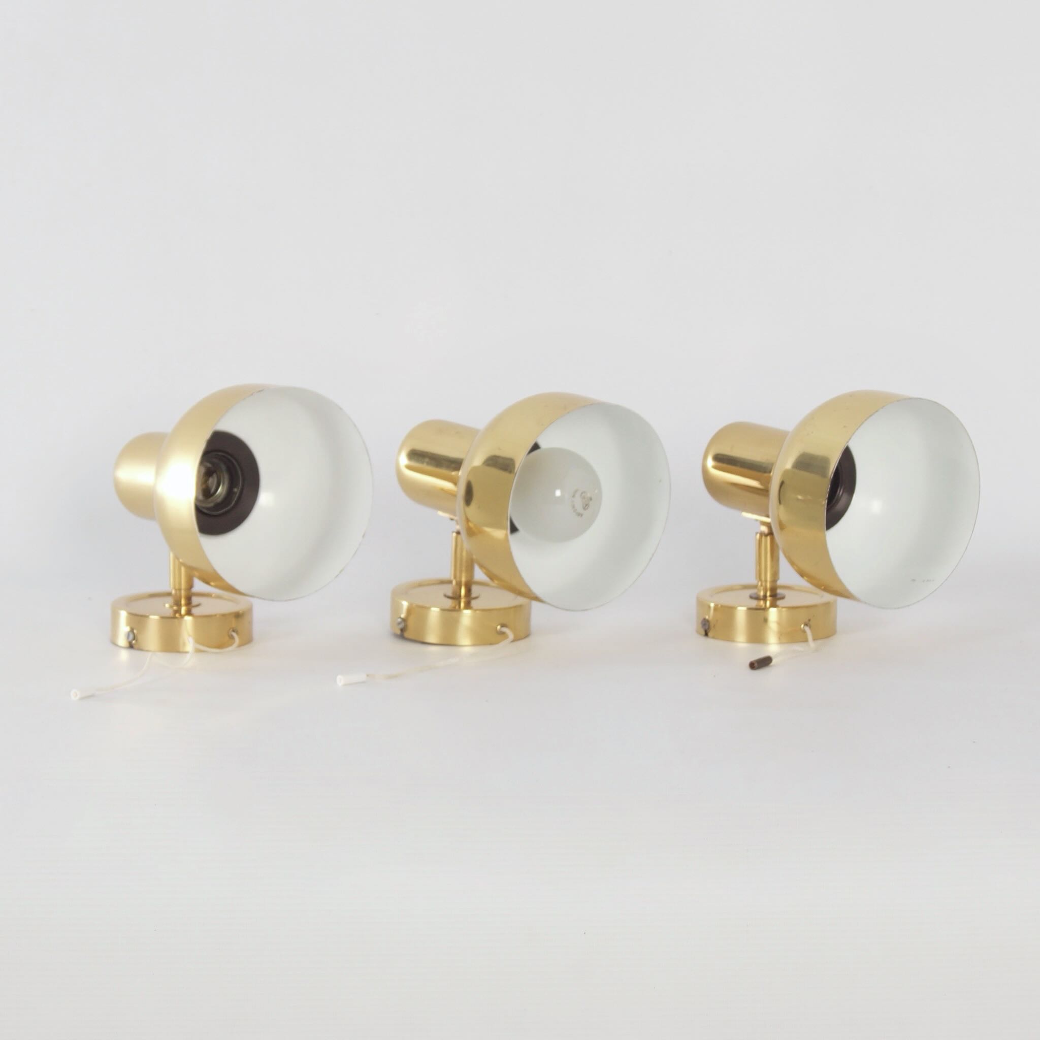 incl. BTW (indien van toepassing) volgens de margeregelingSwedish brass wall lights from the 1970s, set of three – adjustable vintage lighting with authentic Scandinavian design.