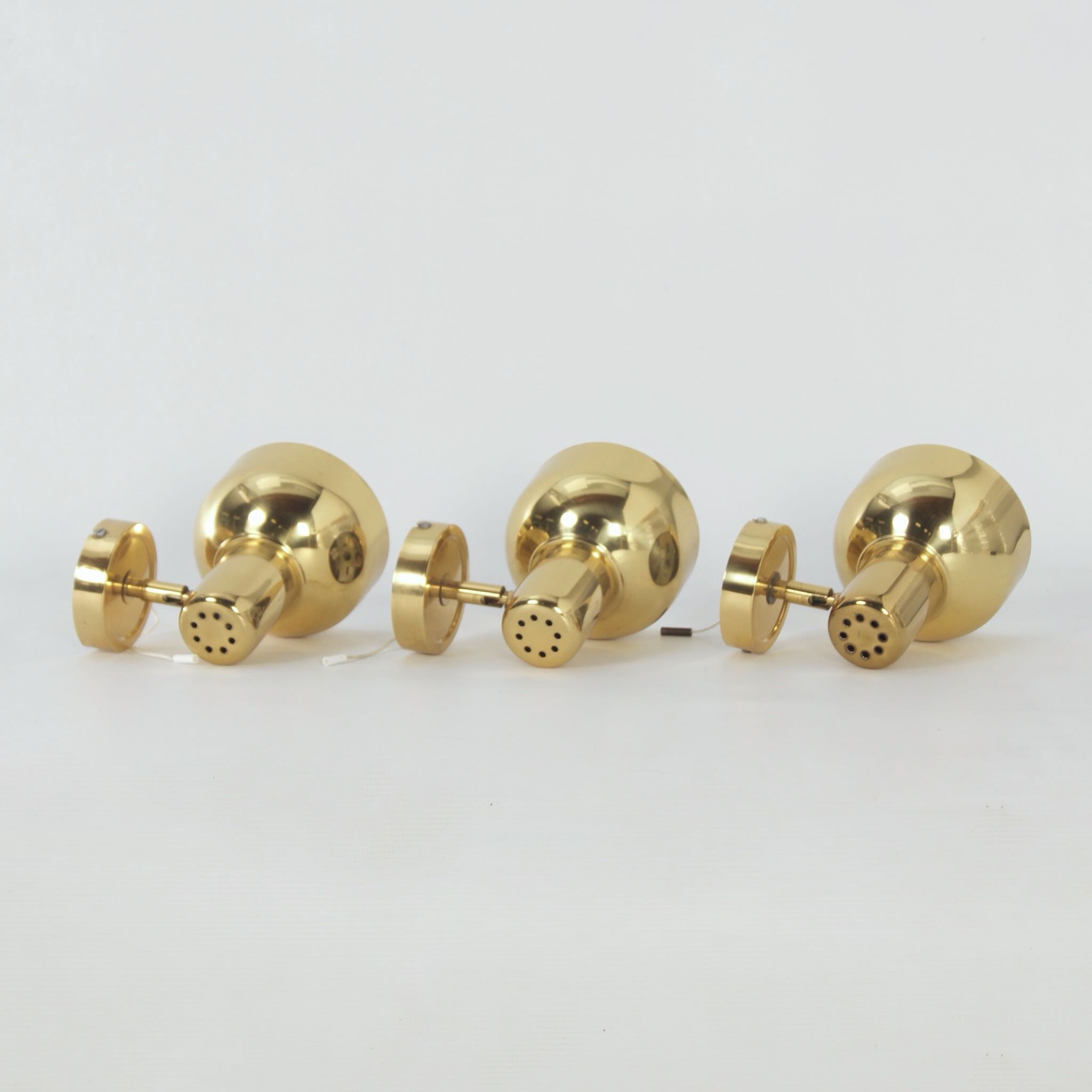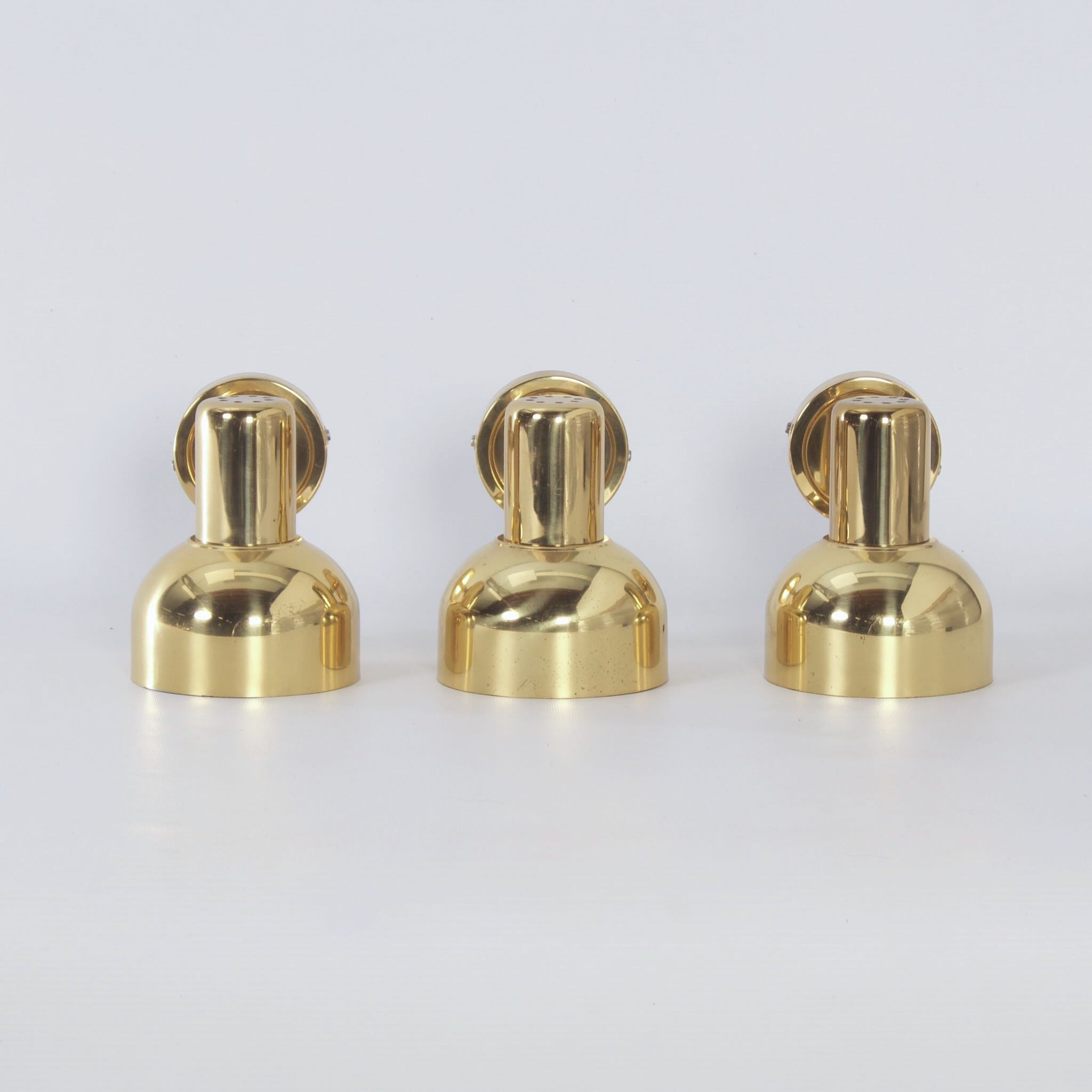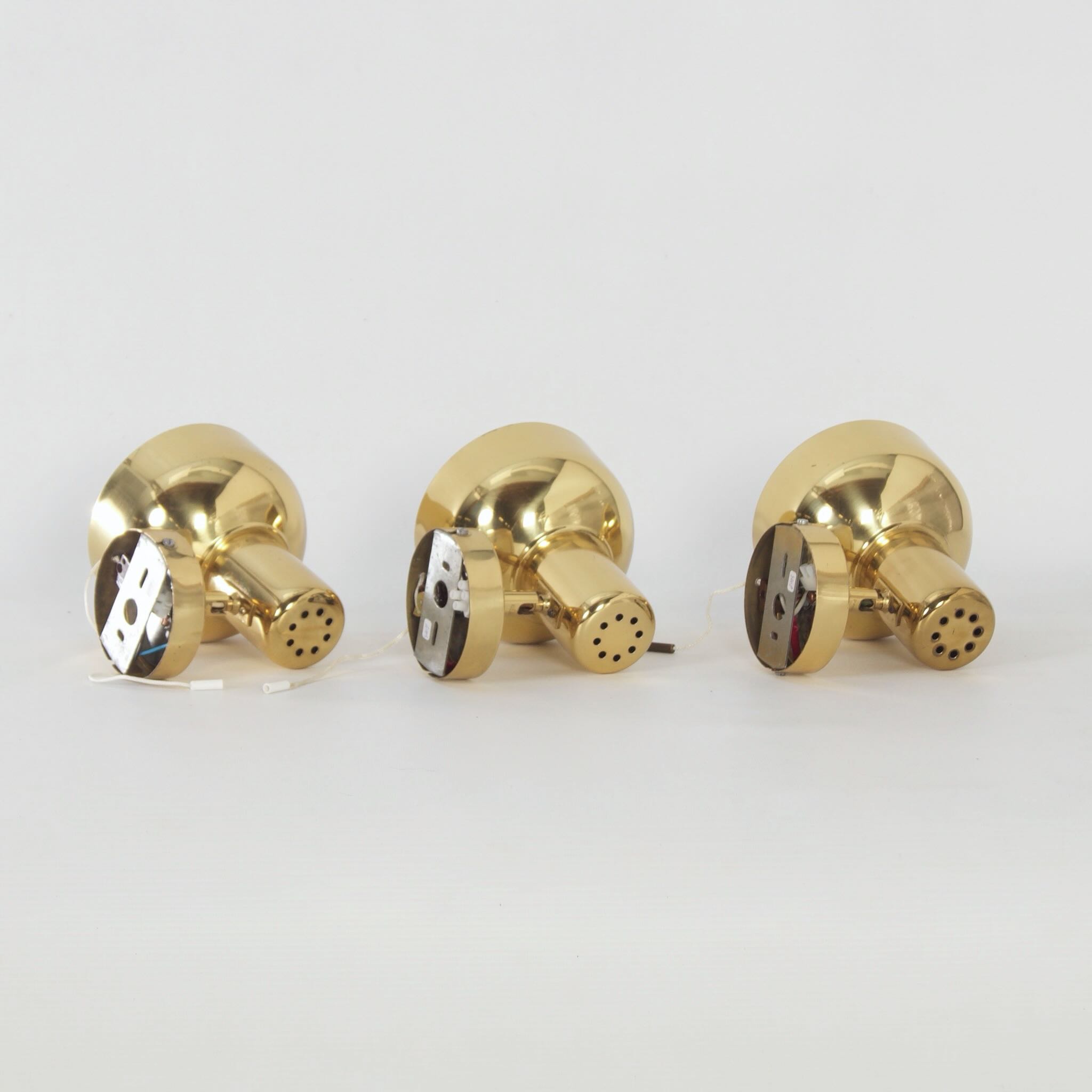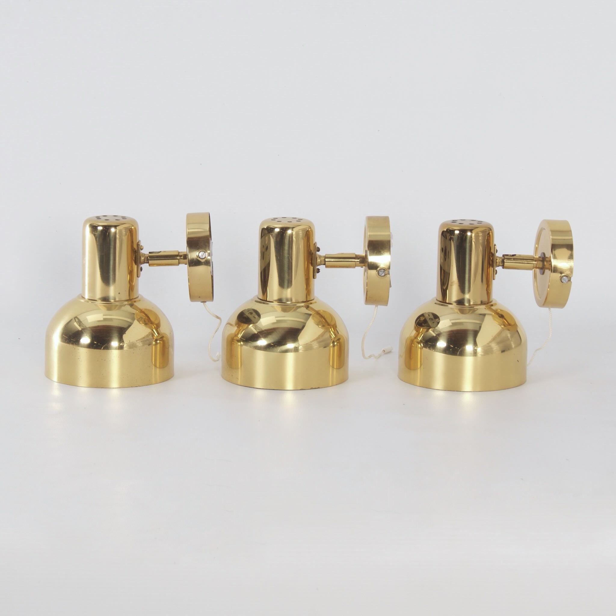 incl. BTW (indien van toepassing) volgens de margeregelingSwedish brass wall lights from the 1970s, set of three – adjustable vintage lighting with authentic Scandinavian design.